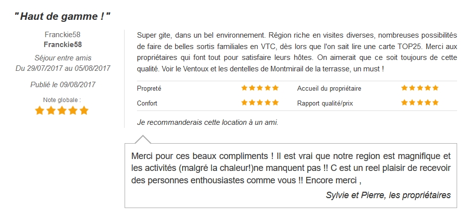 Avis Gîtes de France